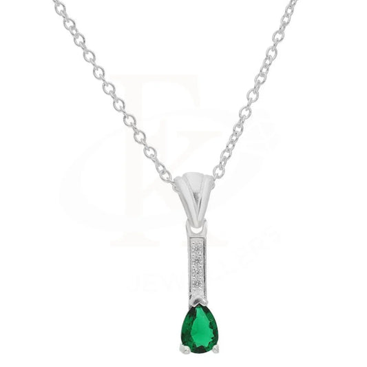 Sterling Silver 925 Pear Shaped Green Solitaire Pendant Set (Necklace, Earrings and Ring) - FKJNKLSTSL2111
