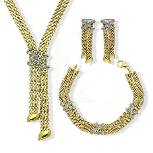 Sterling Silver 925 Gold Plated Pendant Set (Necklace, Earrings and Bracelet) - FKJNKLSTSL2255