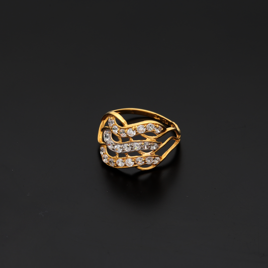 Gold Sleek Twisted CZ Design Ring 21KT - FKJRN21K8862