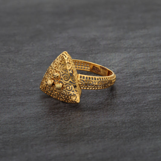 Gold Traditional Triangle Filigree Ring 21KT - FKJRN21KM9680