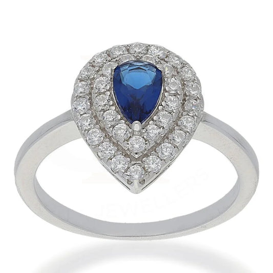 Sterling Silver 925 Pear Shaped Blue Solitaire Ring - FKJRNSL2491
