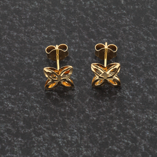 Gold Four Four Leaf Clover Design Earrings 18KT - FKJERN18K9286