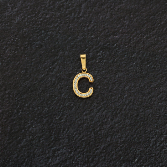Gold C Shaped Alphabet Letter Pendant 18KT - FKJPND18K9409