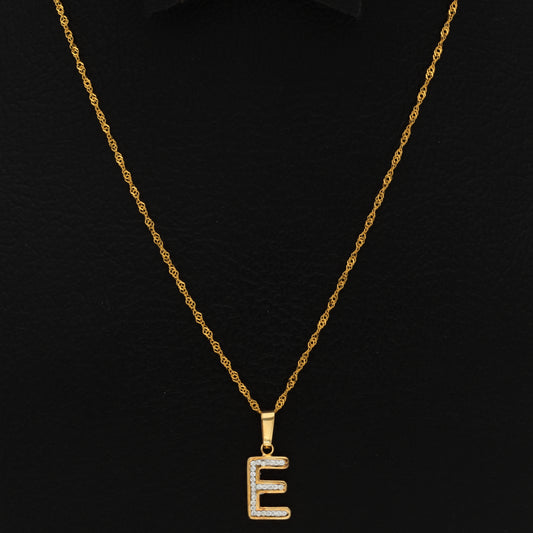 Gold Necklace (Chain with E Shaped Alphabet Letter Pendant) 18KT - FKJNKL18K9411