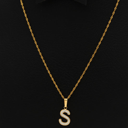 Gold Necklace (Chain with S Shaped Alphabet Letter Pendant) 18KT - FKJNKL18K9422
