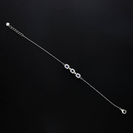 Sterling Silver 925 Blue Sparkling Square Bracelet - FKJBRLSL10577