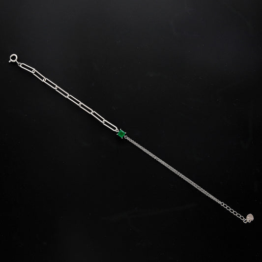 Sterling Silver 925 Elegant Green Stone Bracelet - FKJBRLSL10584