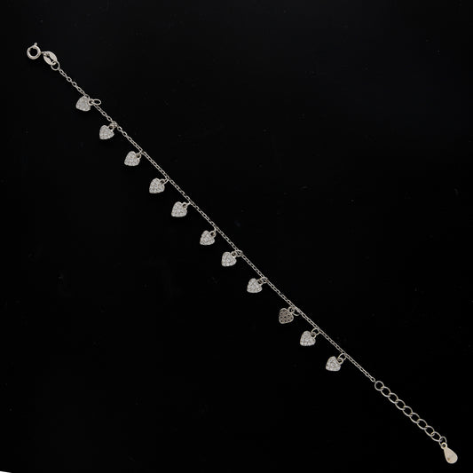 Sterling Silver 925 Diamond Hearts Bracelet - FKJBRLSL10643