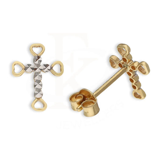 Dual Tone Gold Cross Stud Earrings 18KT - FKJERN18K5547