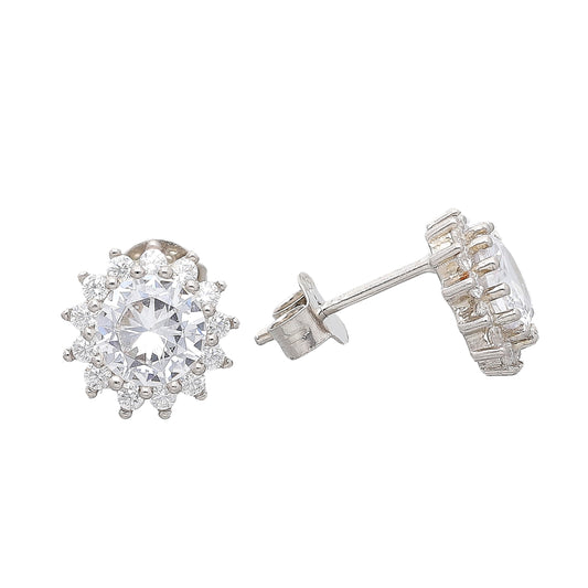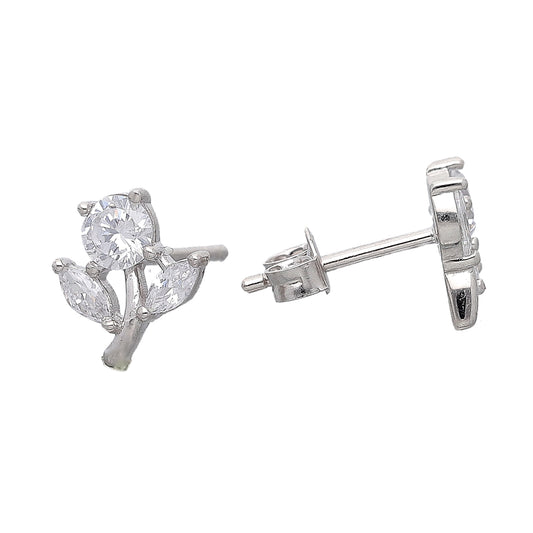 Sterling Silver 925 Crystal Flower Earrings - FKJERNSL10840