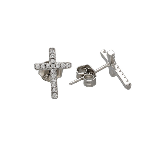 Sterling Silver 925 Sparkling Cross Earrings - FKJERNSL10817