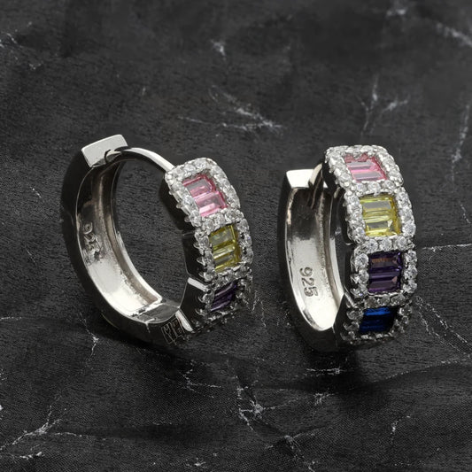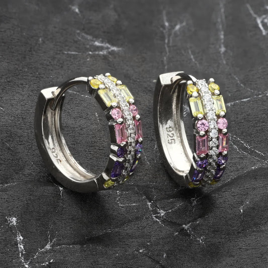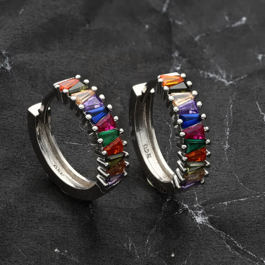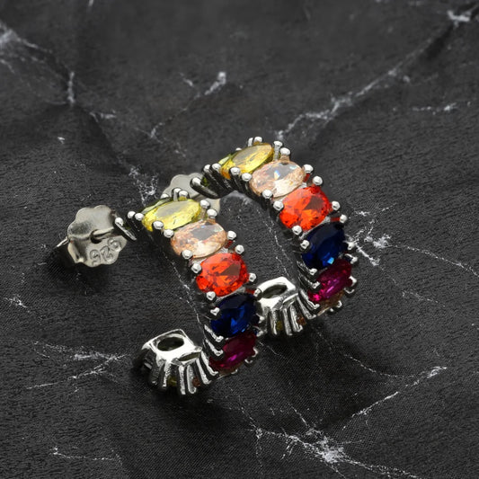 Sterling Silver 925 Colored Zirconium Hoop Earrings - FKJERNSL8579