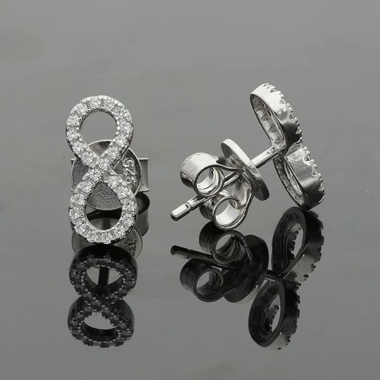 Sterling Silver 925 Infinity Stud Earrings - FKJERNSL2983