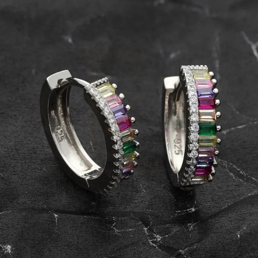 Sterling Silver 925 White Gold Rainbow Hoop Earrings - FKJERNSL8577