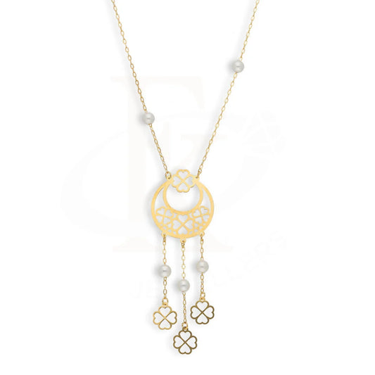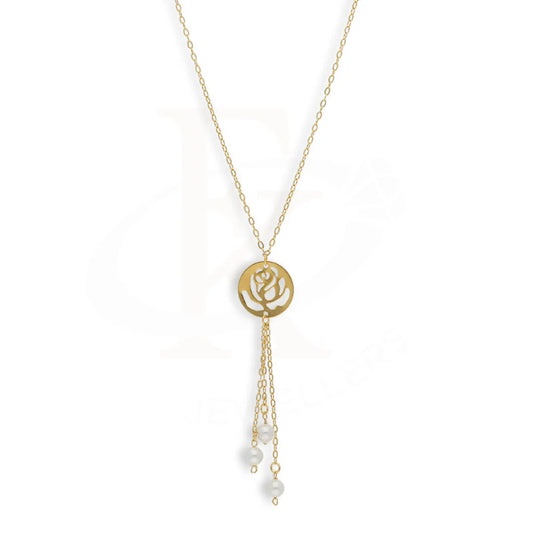 Gold Rose with Hanging Pearl Necklace 21KT - FKJNKL21KM5397