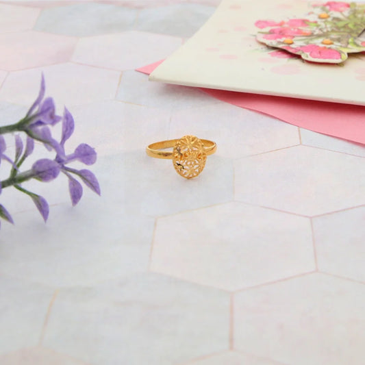 Sterling Silver 925 Gold Plated Flower Shaped with Pearl Ring - FKJRNSL2259
