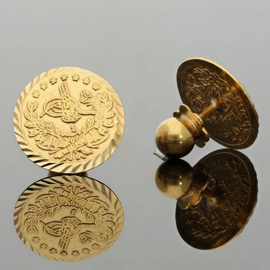 Gold Coin Shaped Stud Earrings 21KT - FKJERN21K2425