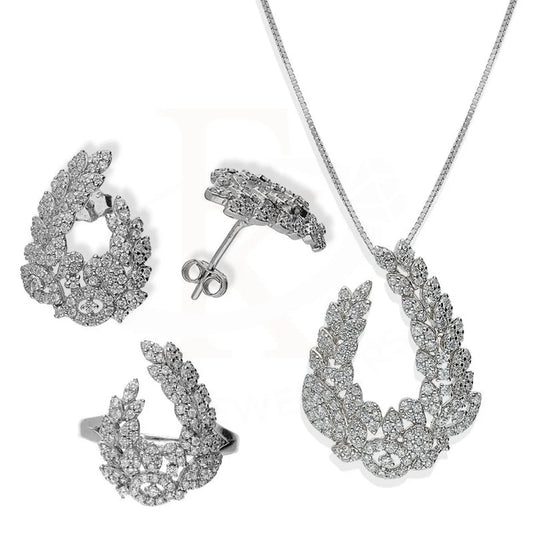 Sterling Silver 925 Pendant Set (Necklace, Earrings and Ring) - FKJNKLSTSL2179