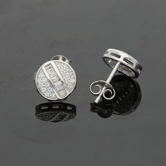 Sterling Silver 925 Round Shaped Stud Earrings - FKJERNSL2984