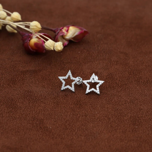 Sterling Silver 925 Star Stud Cubic Zircon Earrings - FKJERNSL8000