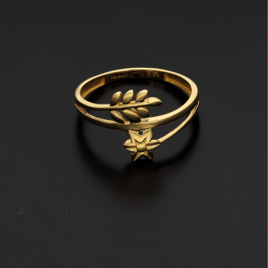 Gold Star & Leaf Design Ring 18KT - FKJRN18K9235