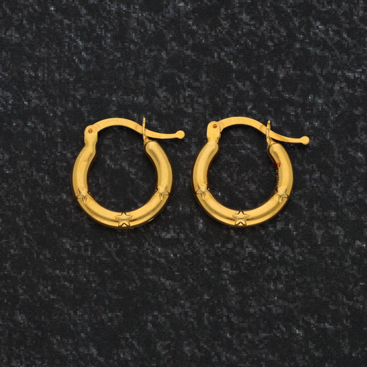 Gold Star Design Hoop Earrings 18KT - FKJERN18K9273