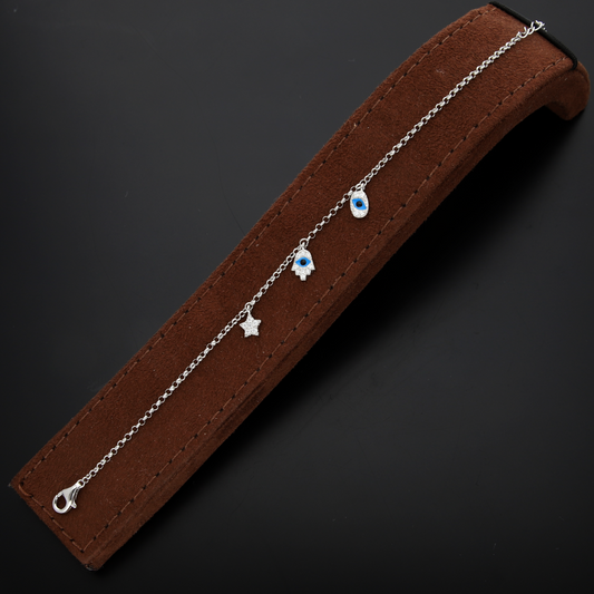 Sterling Silver 925 Evil Eye Charm Bracelet - FKJBRLSL8059