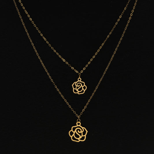Gold Layered Necklace (Chain With Hollow Rose Shaped Pendant) 21KT - FKJNKL21KM9778