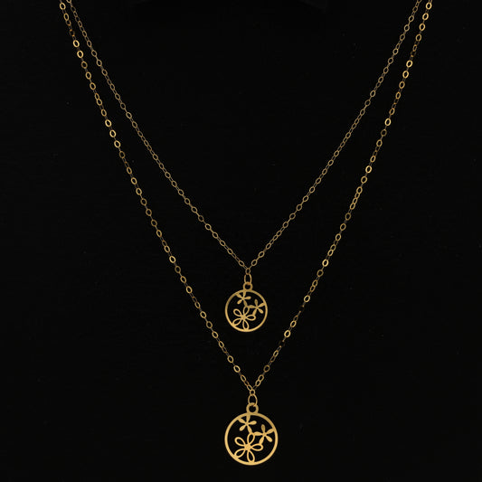 Gold Layered Necklace (Chain With Hollow Round Flower Shaped Pendant) 21KT - FKJNKL21KM9775