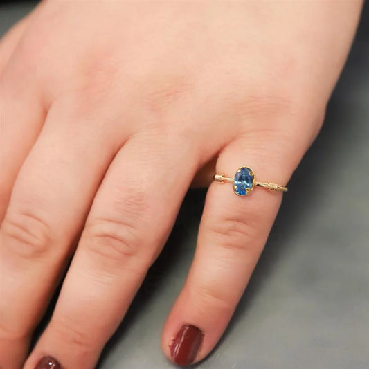 Gold Fine Blue Crystal Ring 21KT - FKJRN21KM8118