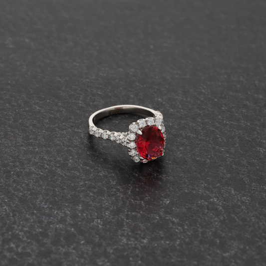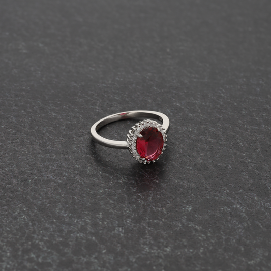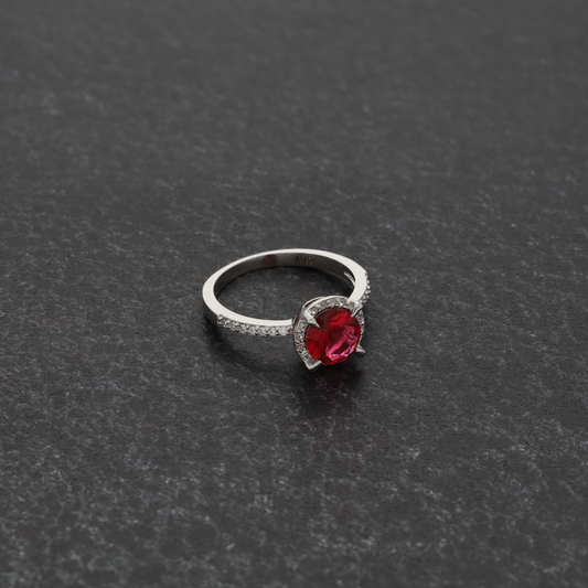 Sterling Silver 925 Faceted Red Topaz Women's Solitaire Ring - FKJRNSL8268