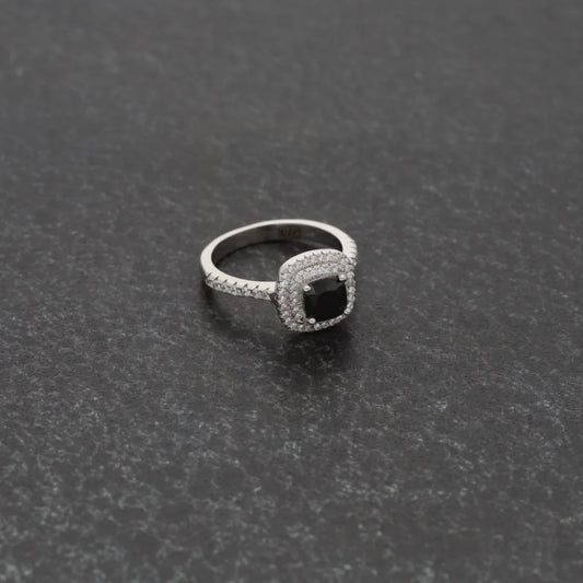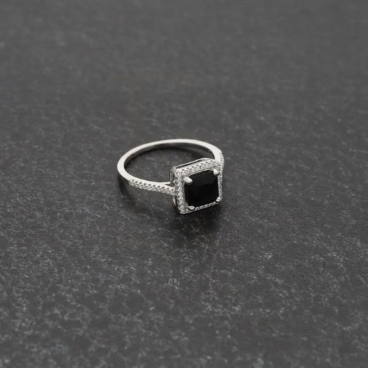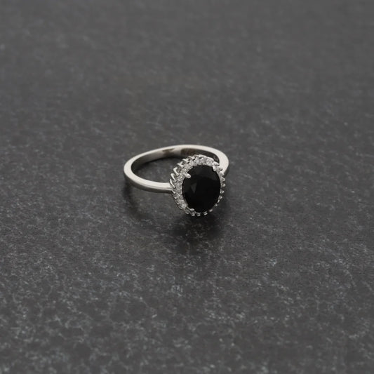 Sterling Silver 925 Faceted Black Topaz Women's Solitaire Ring - FKJRNSL8295