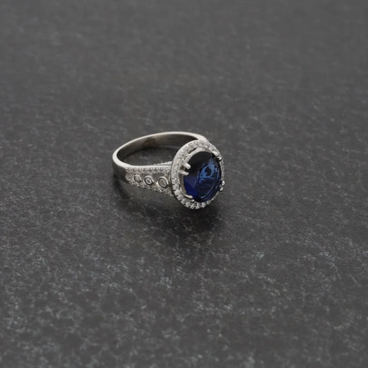 Sterling Silver 925 Faceted Dark Blue Topaz Women's Solitaire Ring - FKJRNSL8299