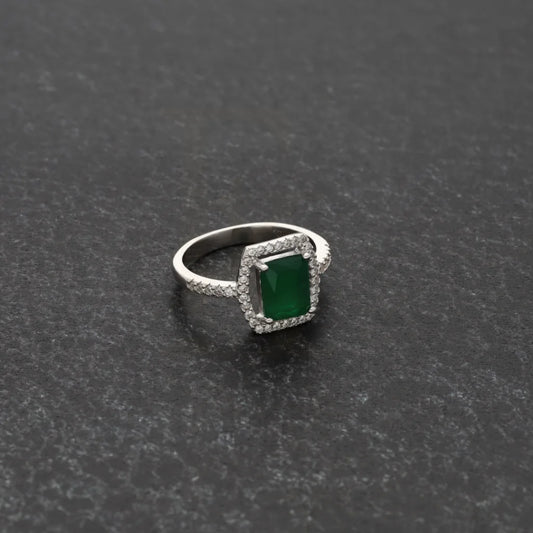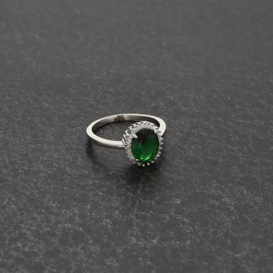 Sterling Silver 925 Faceted Green Topaz Women's Solitaire Ring - FKJRNSL8281