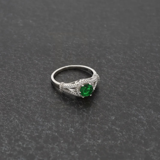 Sterling Silver 925 Faceted Green Topaz Women's Solitaire Ring - FKJRNSL8283