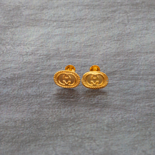 Gold Oval Shaped Stud Earrings 21KT - FKJERN21KM8484