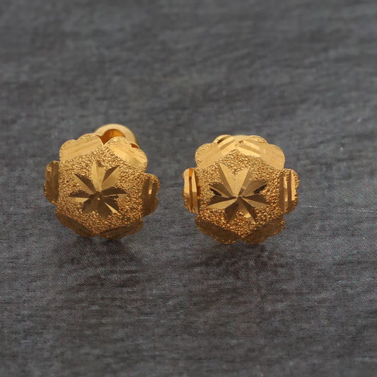 Gold Designer Stud Flower Earrings 21KT - FKJERN21KM8621