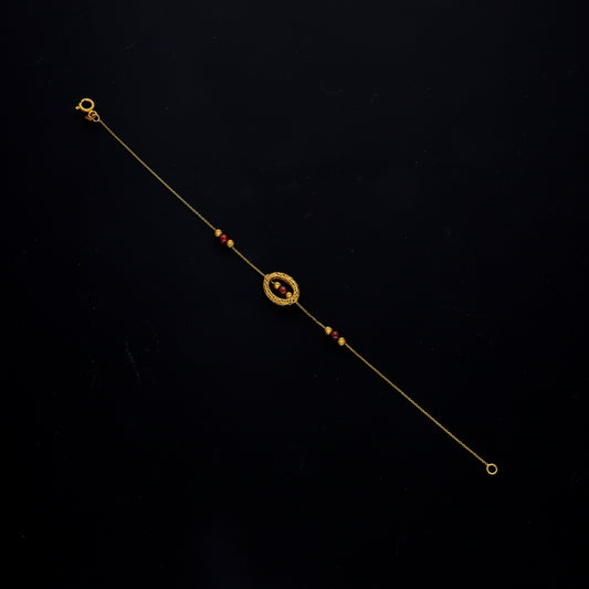Gold Beaded Red Accent Bracelet 21KT - FKJBRL21KM10520