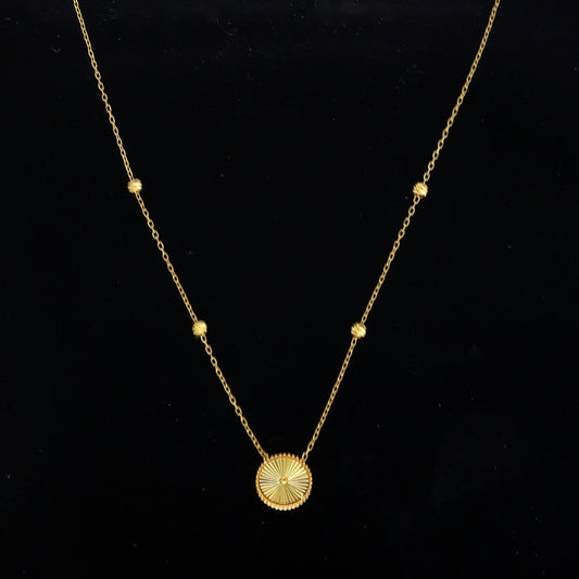 Gold Sunburst Charm Necklace 21KT - FKJNKL21KM10906