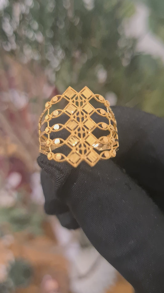 Gold Filigree Grid Ring 21KT - FKJRN21KM10881
