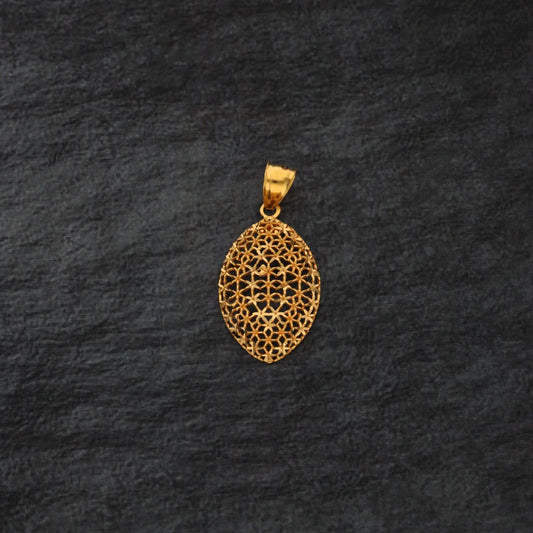 Gold Oval Flower Design Pendant 21KT - FKJPND21KM8374