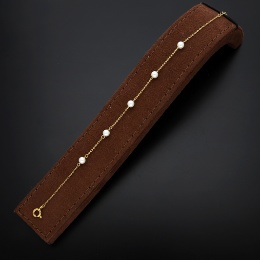 سوار من الفضة الإسترلينية عيار 925 مطلي بالذهب واللؤلؤ المستدير - FKJBRLSL9342