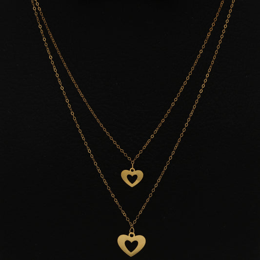قلادة ذهبية مزدوجة الطبقات على شكل قلب عيار 21 - FKJNKL21KM9805