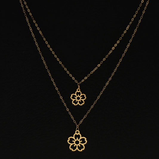 Gold Double Layered Cherry Blossoms Shaped Necklace 21KT - FKJNKL21KM9792