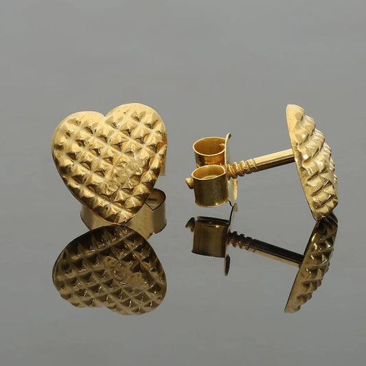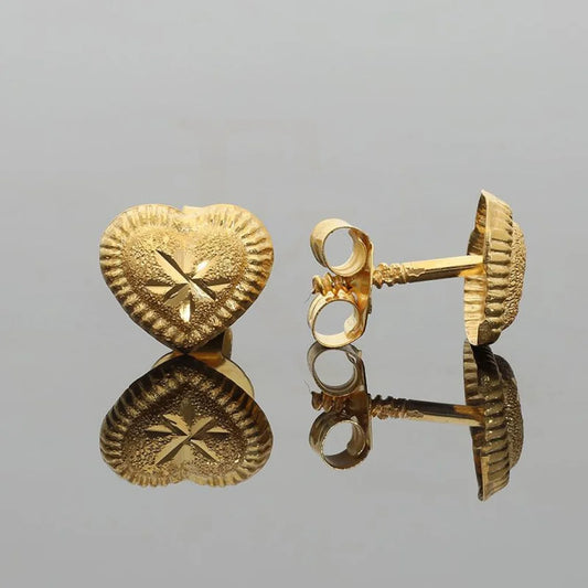 Gold Stud Heart Earrings 18KT - FKJERN1455