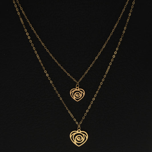 Gold Double Layered Rose in Heart Shaped Necklace 21KT - FKJNKL21KM9788