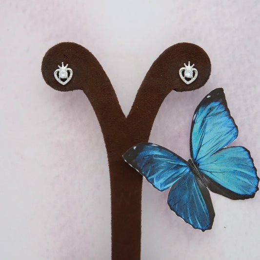 Sterling Silver 925 Zircon Crown Heart Shaped Earrings - FKJERNSL7973