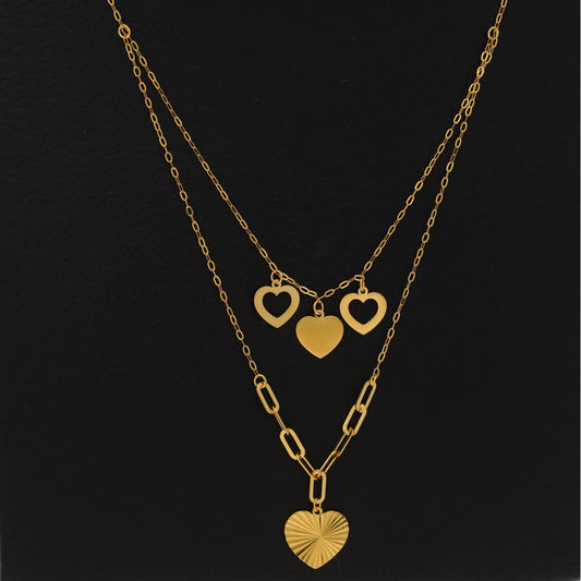 Gold Double Layered Necklace (Chain With Hollow Heart Shaped Pendant) 21KT - FKJNKL21KM9894