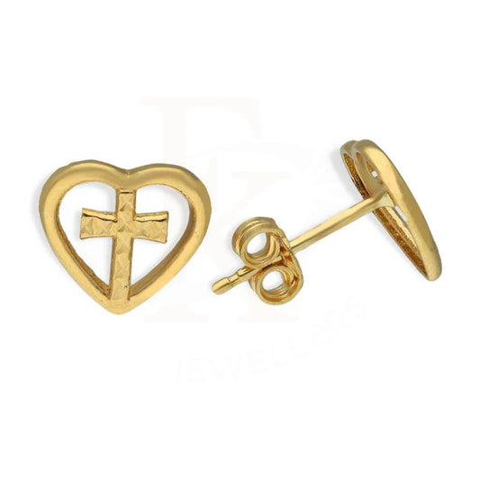 Gold Heart Cross Stud Earrings 18KT - FKJERN18K2799