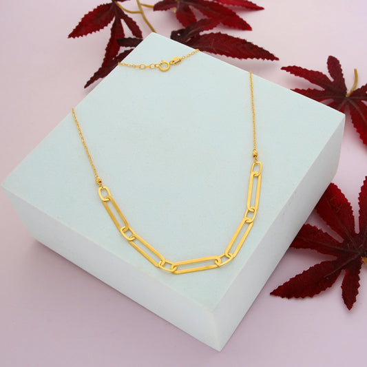 Gold Paperclip Shaped Pendant Set (Necklace, Bracelet and Earrings) 21KT - FKJNKLST21KM9859